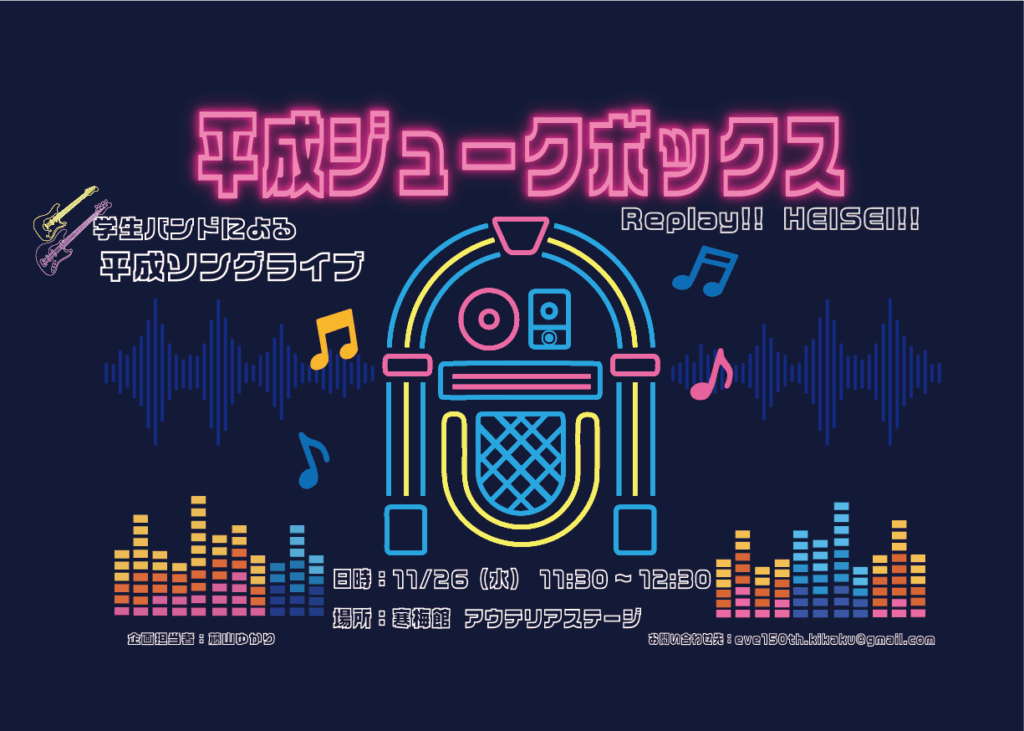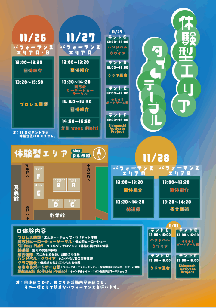 加えて、11:00〜11:20,15:40〜16:00には軽音サークルなどから豪華ゲストが登場🎸