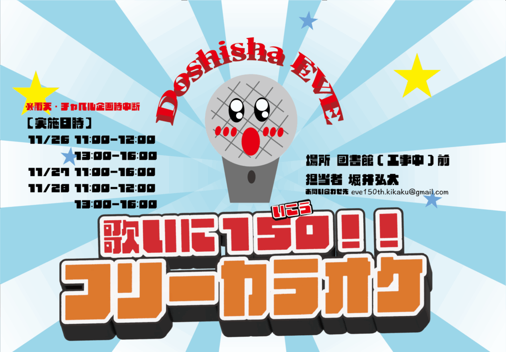 誰でも歌えるフリーカラオケ企画を行います!150周年を迎える同志社EVEであなたの声を響かせよう!