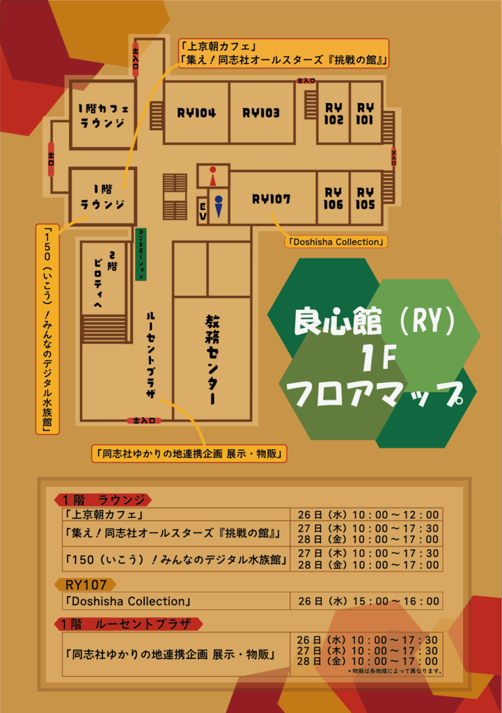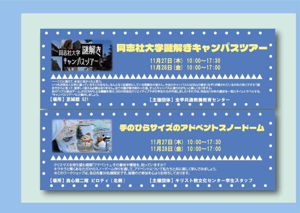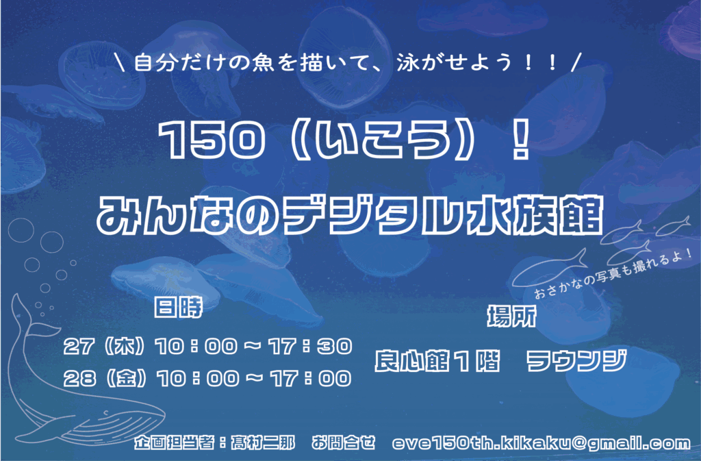 スペシャルカードのプレゼントや、お魚の帽子をかぶって写真が撮れるフォトスポット、同志社にちなんだ魚のイラストの展示など楽しいコンテンツが盛りだくさん🙌
