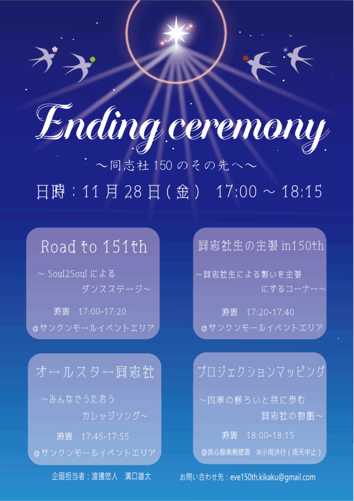 ①第150回同志社EVEのフィナーレを彩るEnding Ceremony〜同志社150のその先へ〜がサンクンモールイベントエリアにて幕を開ける